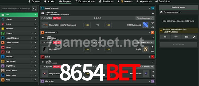 O 8654Bet oferece uma grande seleção de opções de apostas em e-sports com probabilidades competitivas